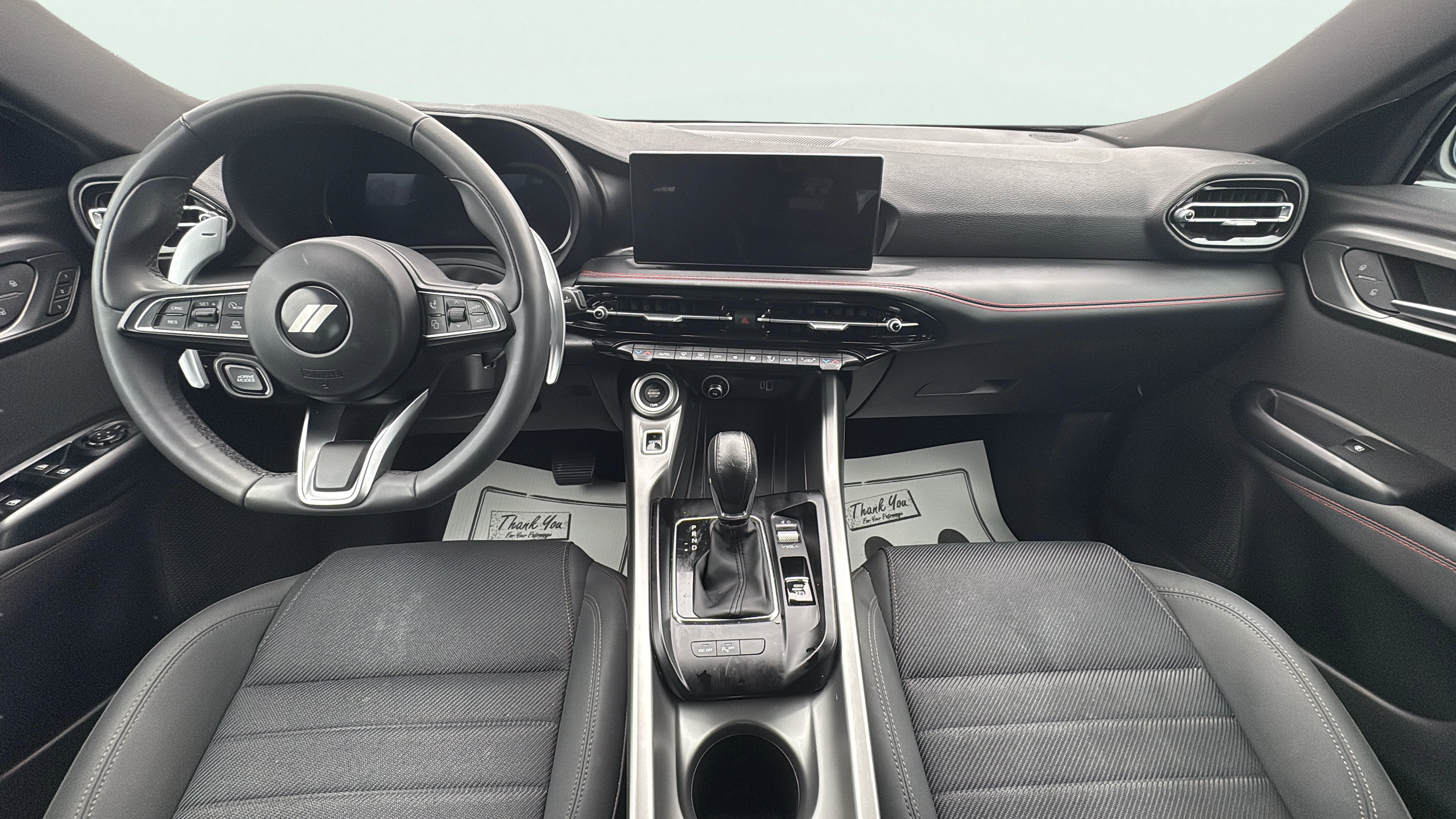 Cloth and leatherette front seat upholstery