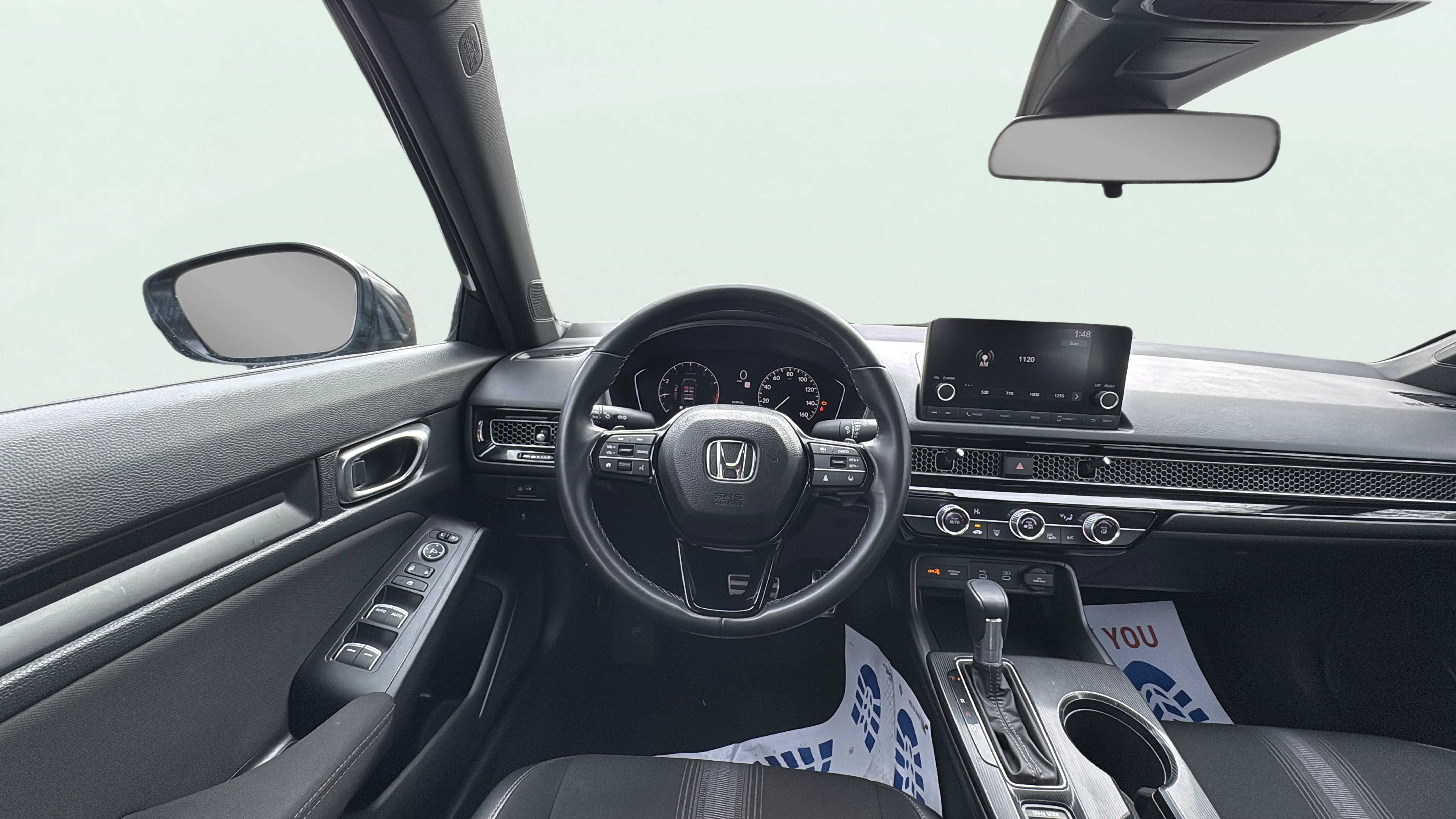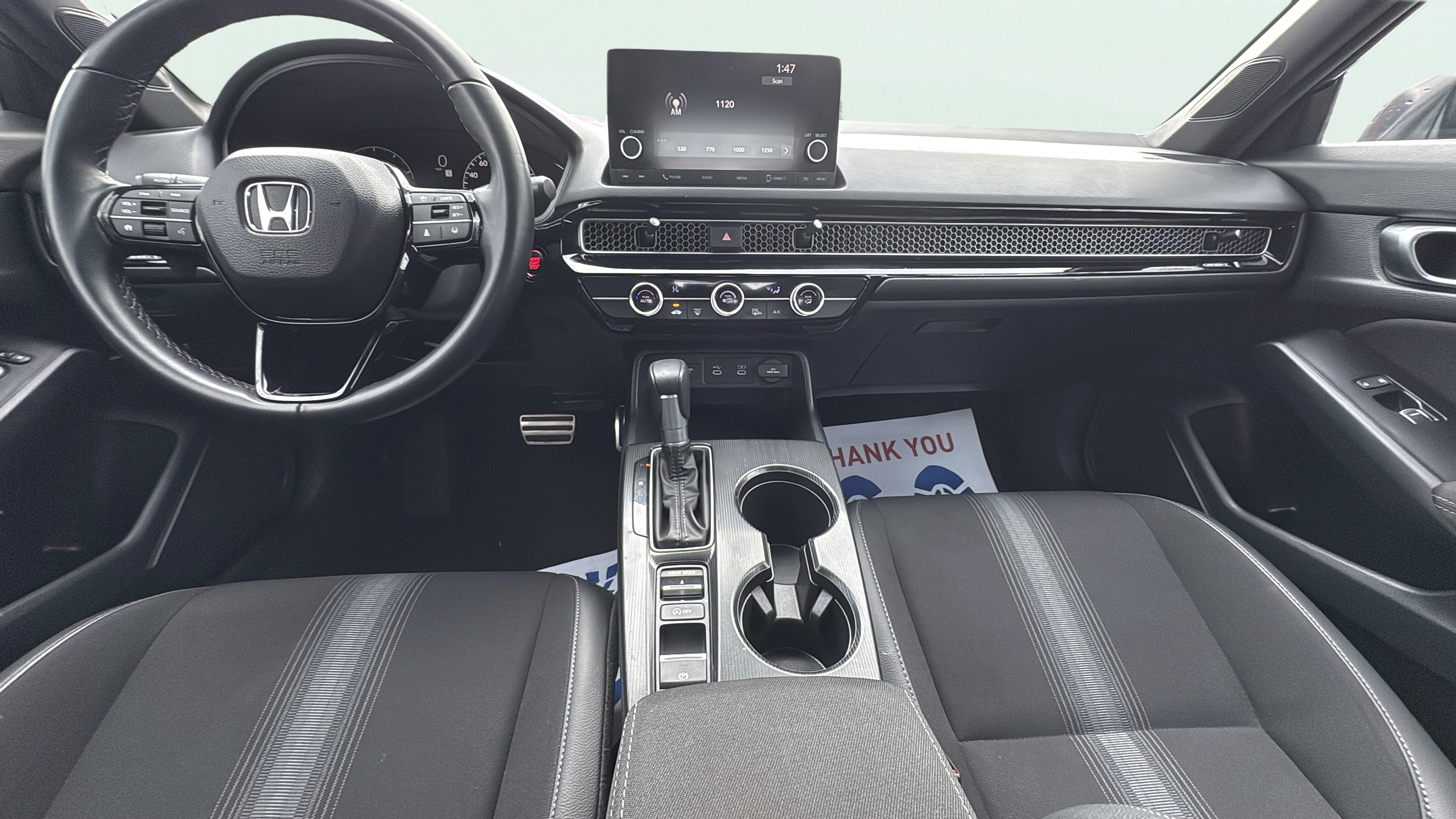 Cloth and leatherette front seat upholstery