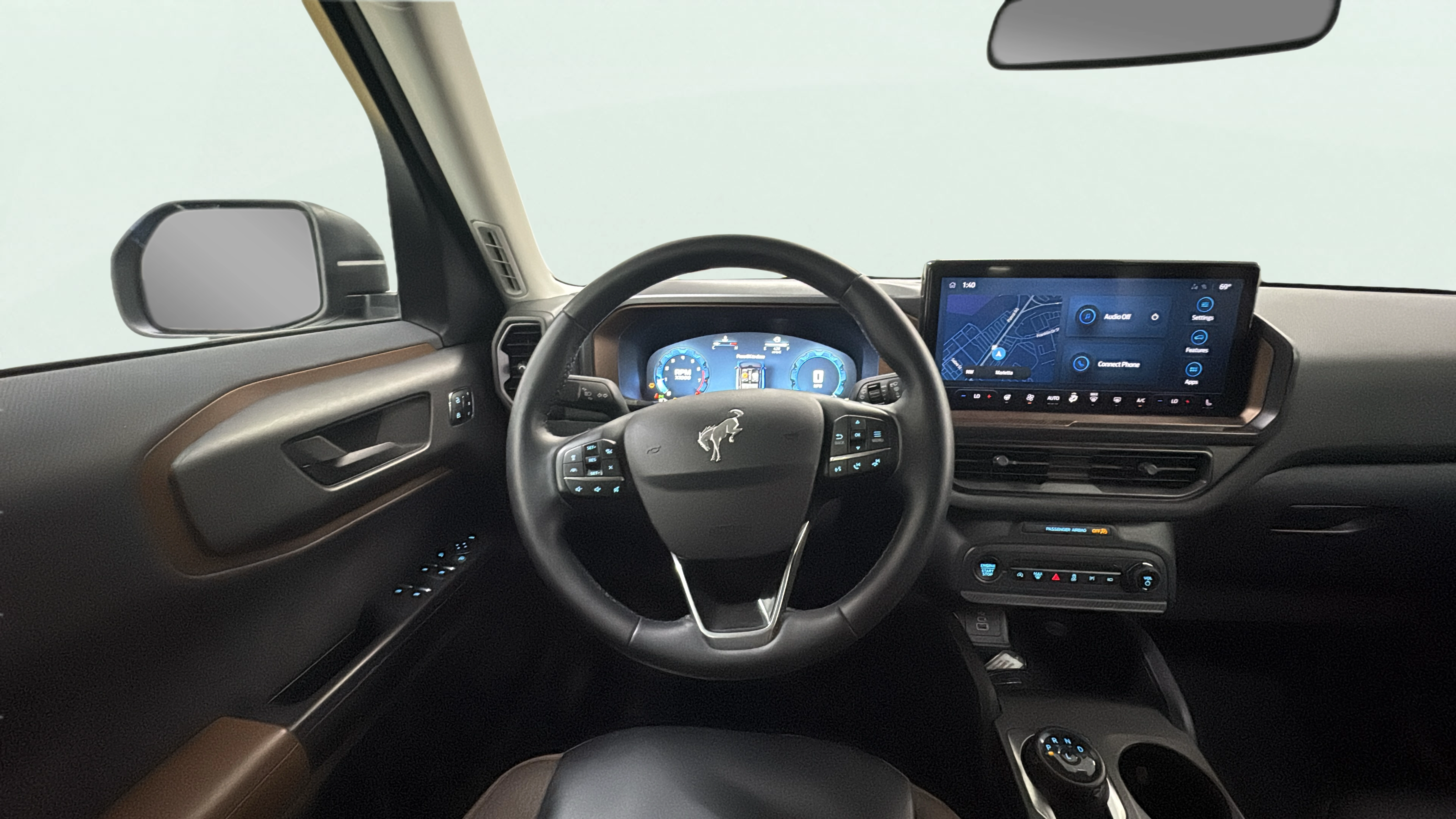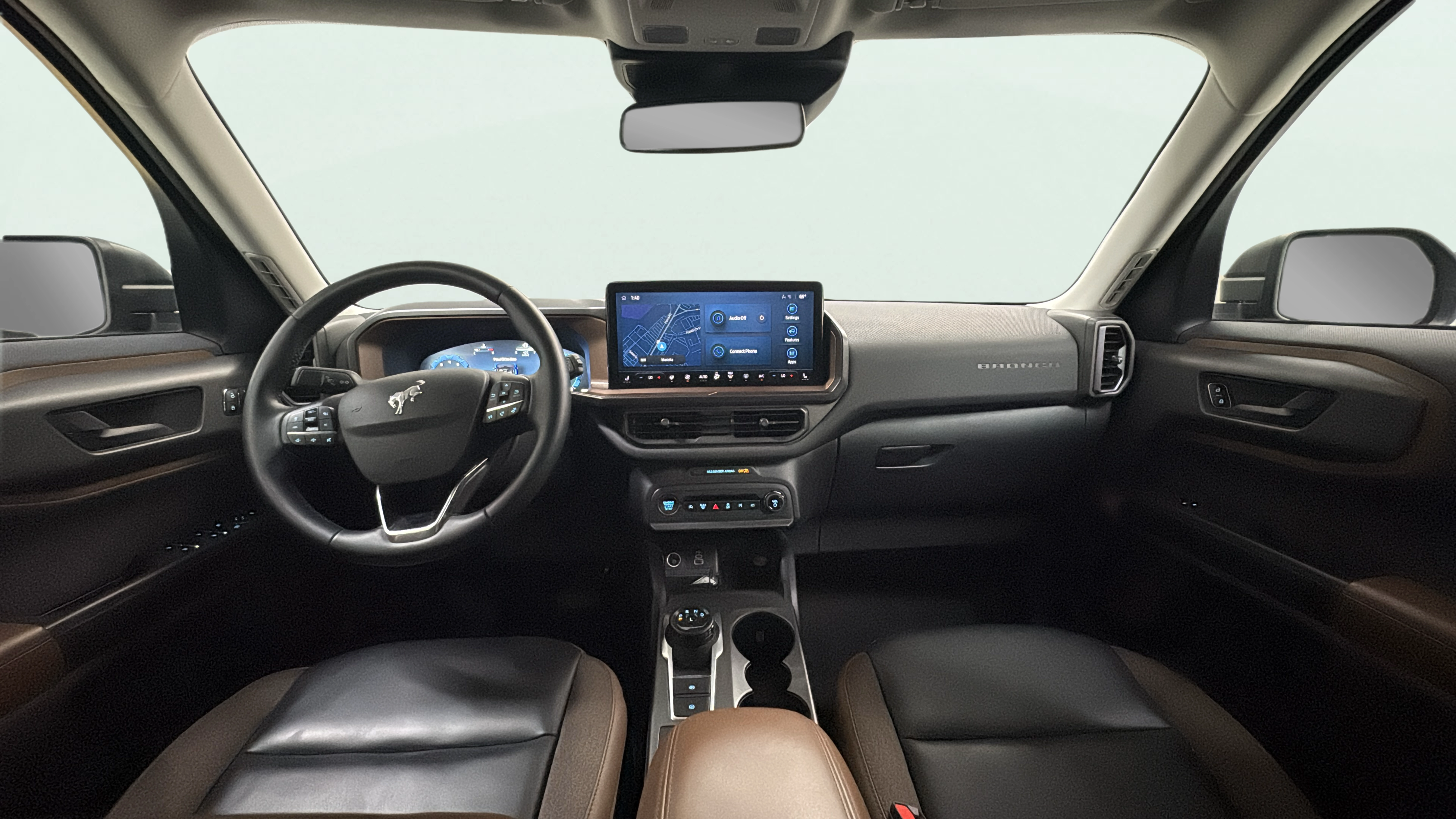 Cloth and leatherette front seat upholstery