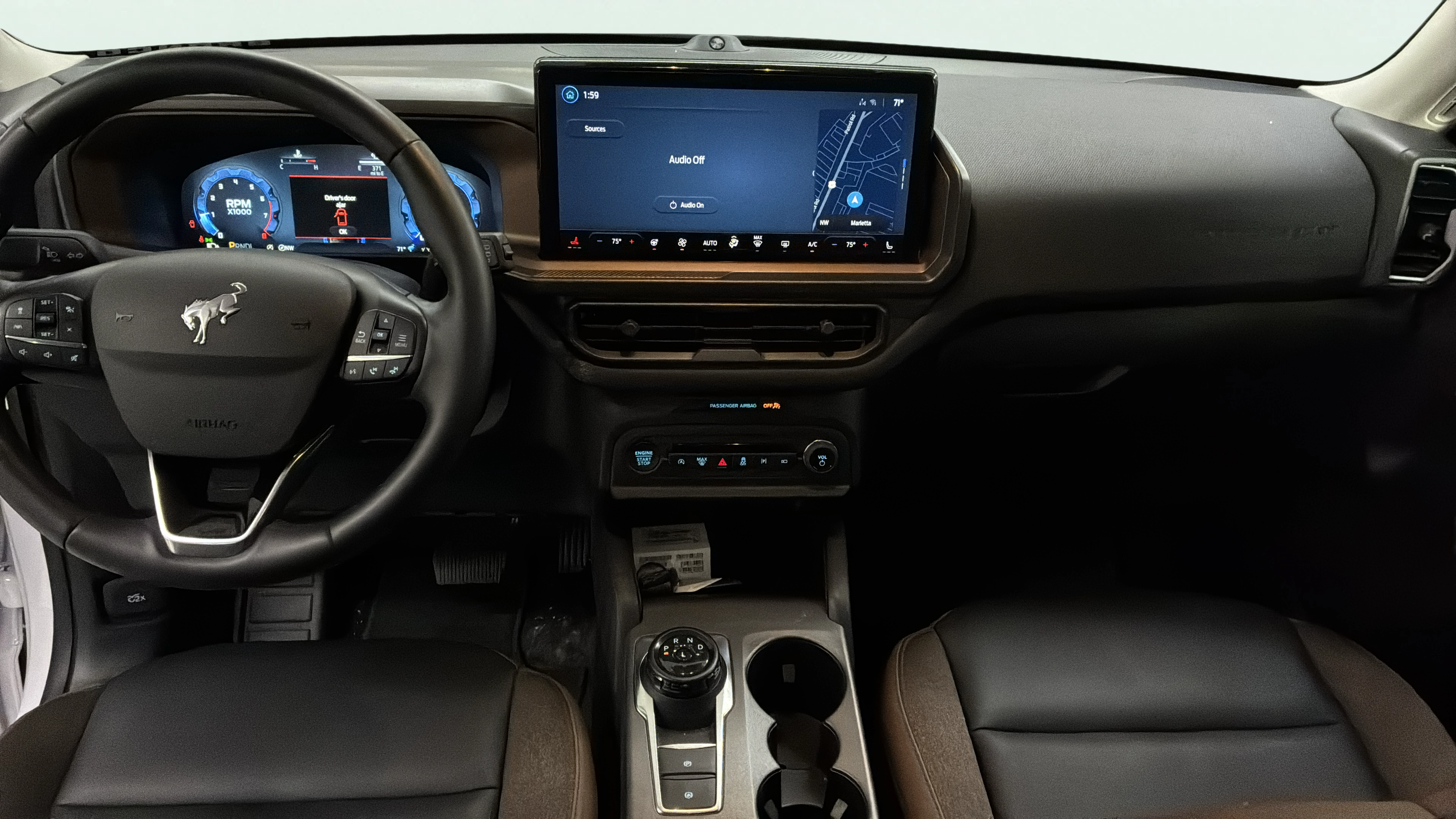 Cloth and leatherette front seat upholstery