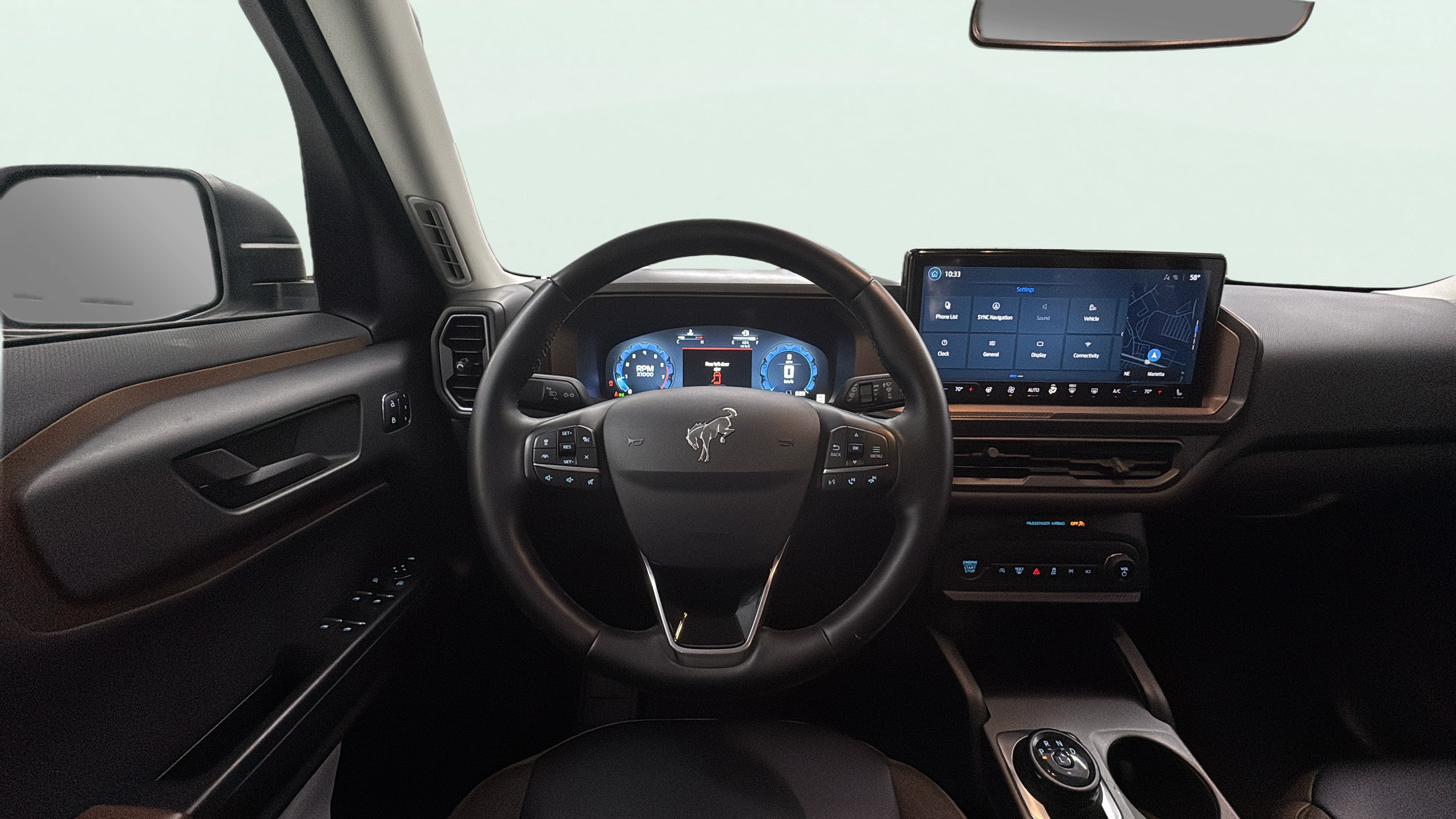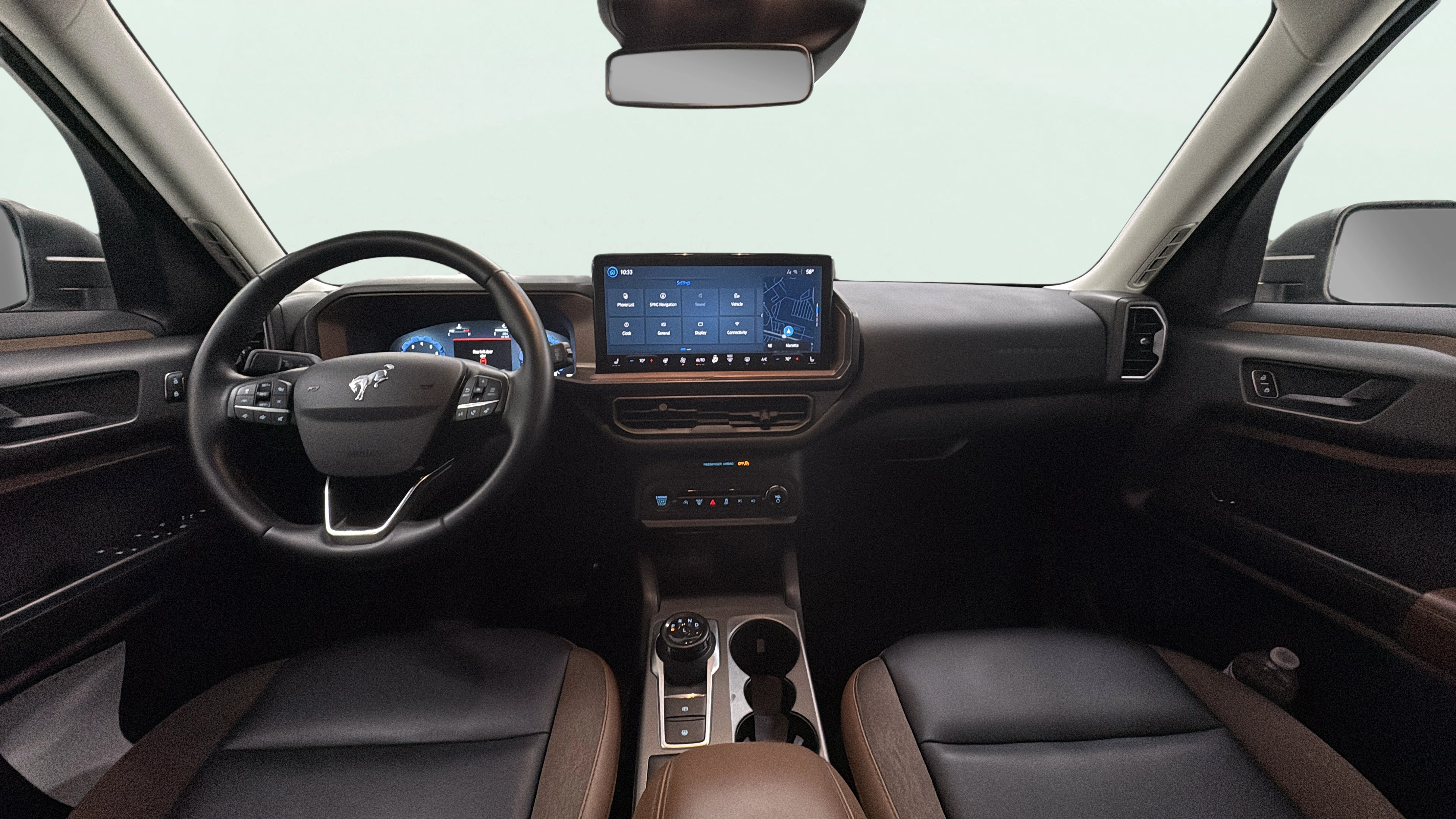 Cloth and leatherette front seat upholstery