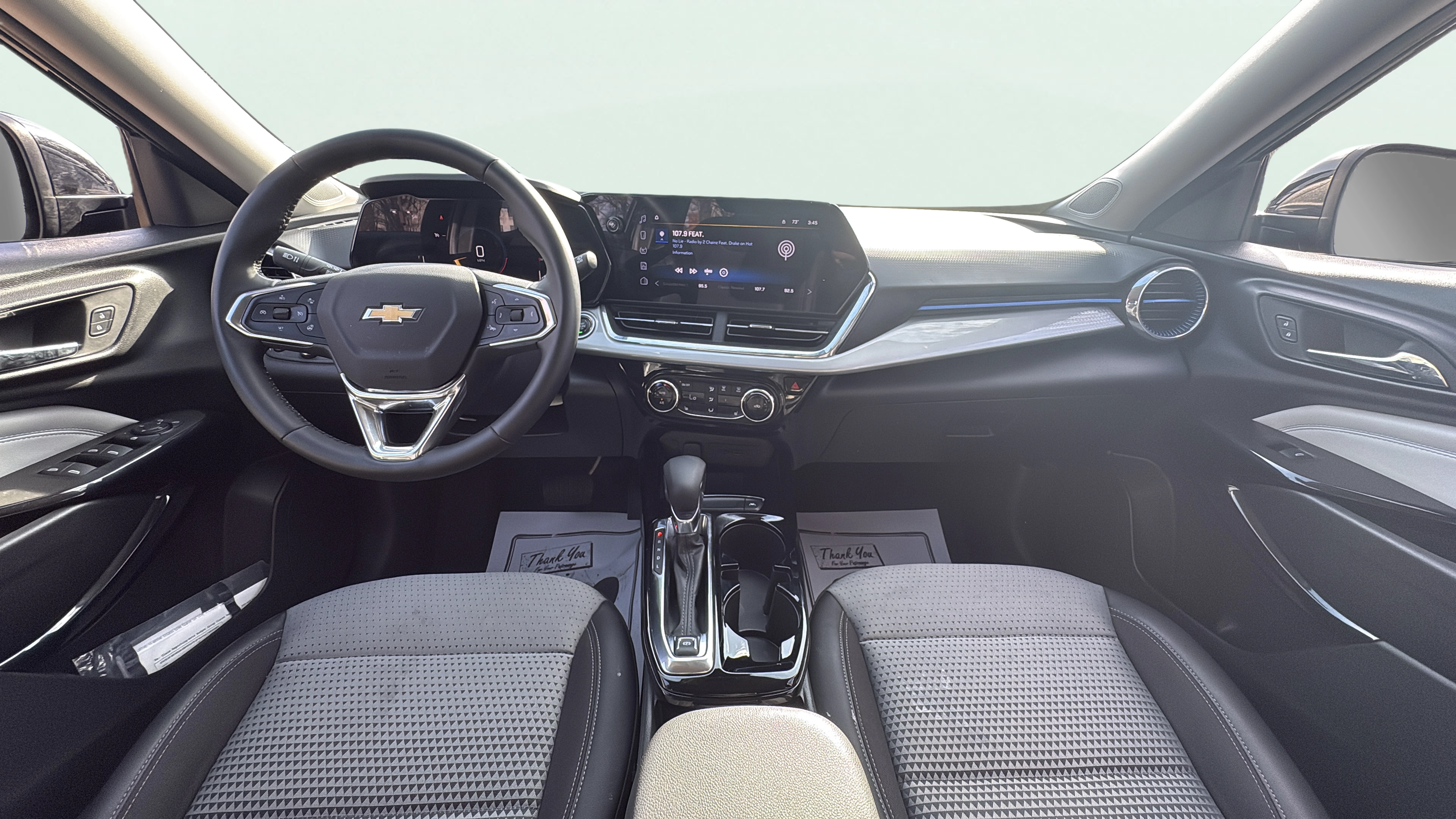 Cloth and leatherette front seat upholstery