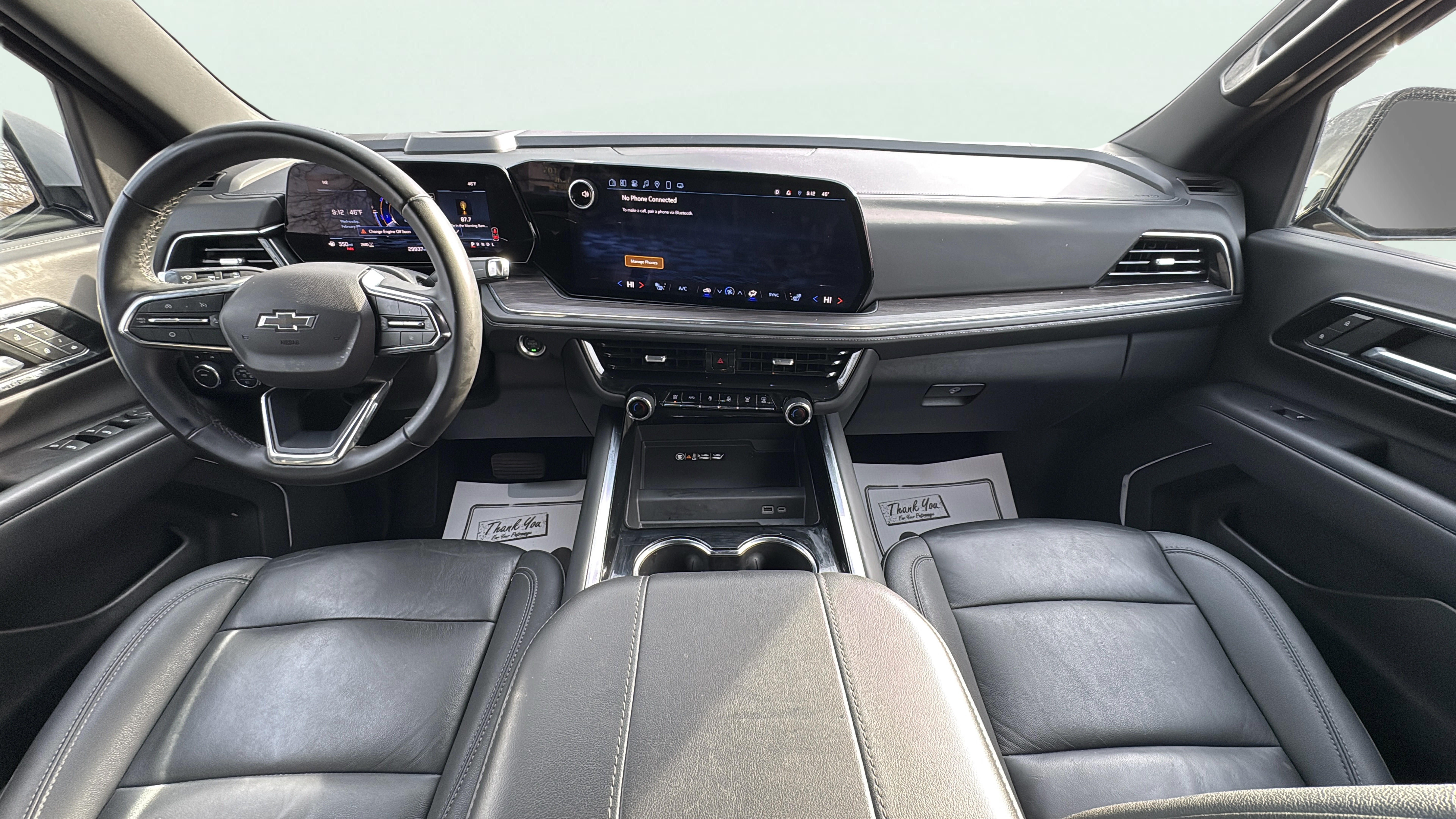Leather front seat upholstery
