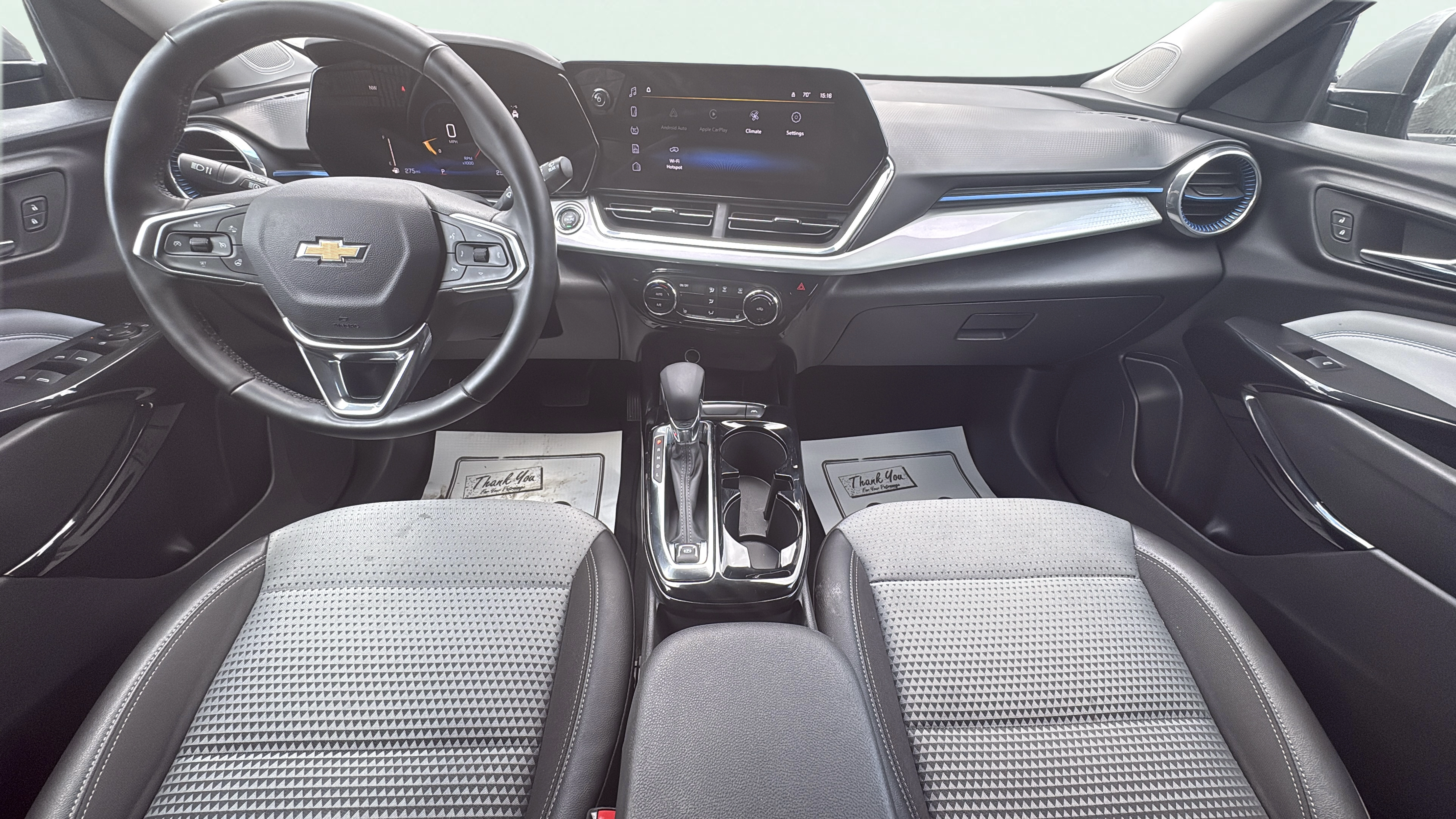 Cloth and leatherette front seat upholstery