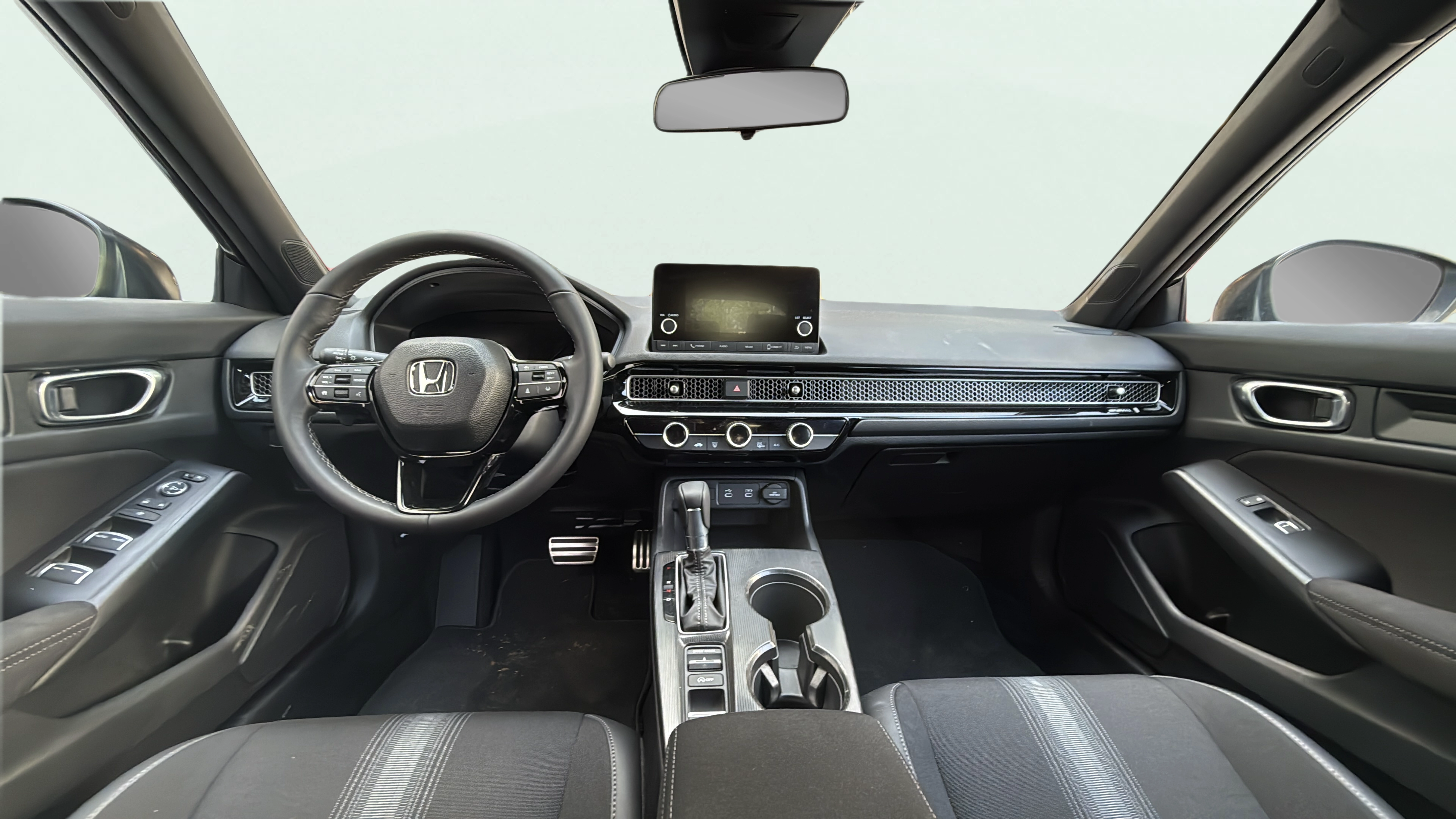 Cloth and leatherette front seat upholstery