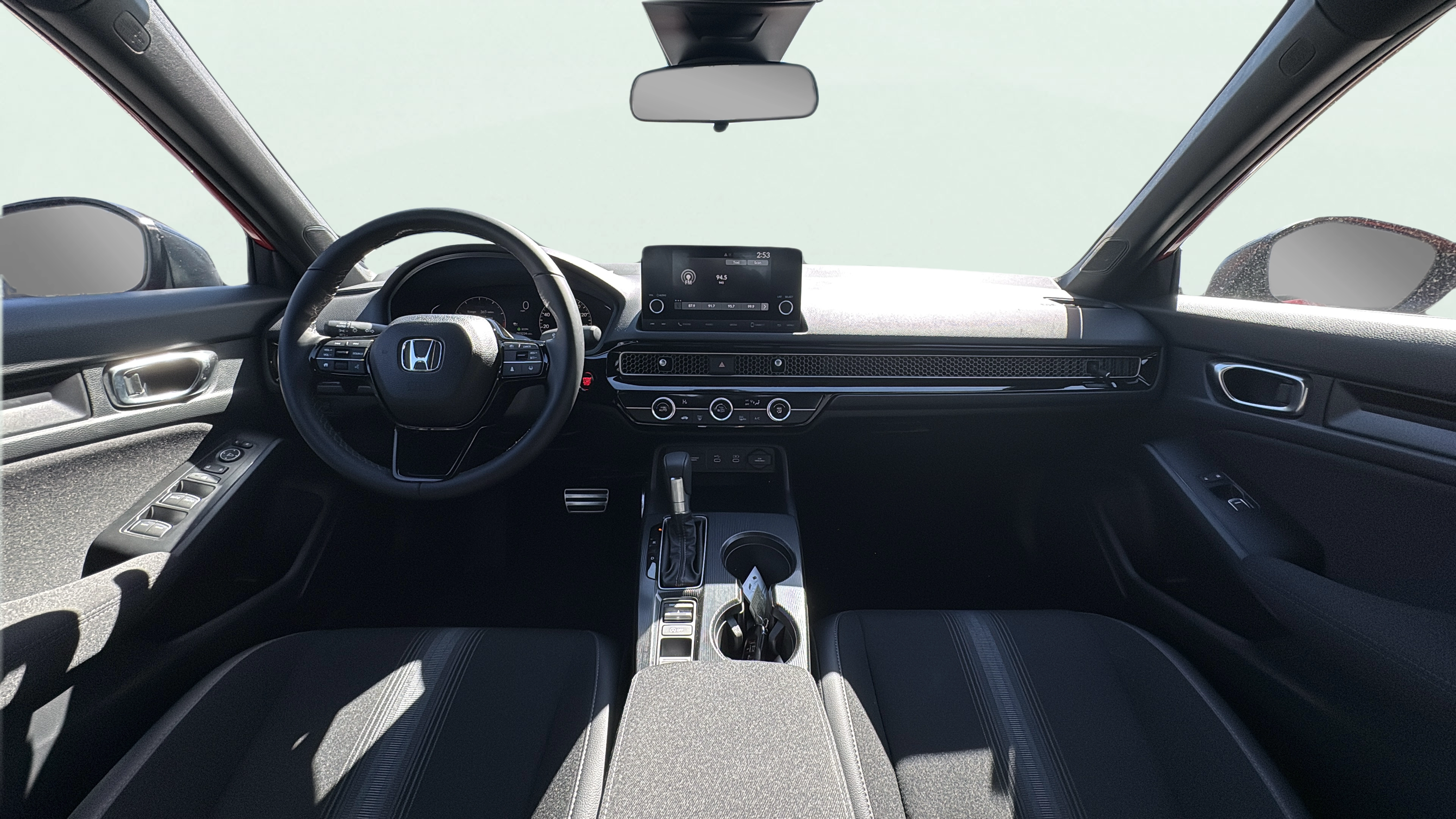 Cloth and leatherette front seat upholstery