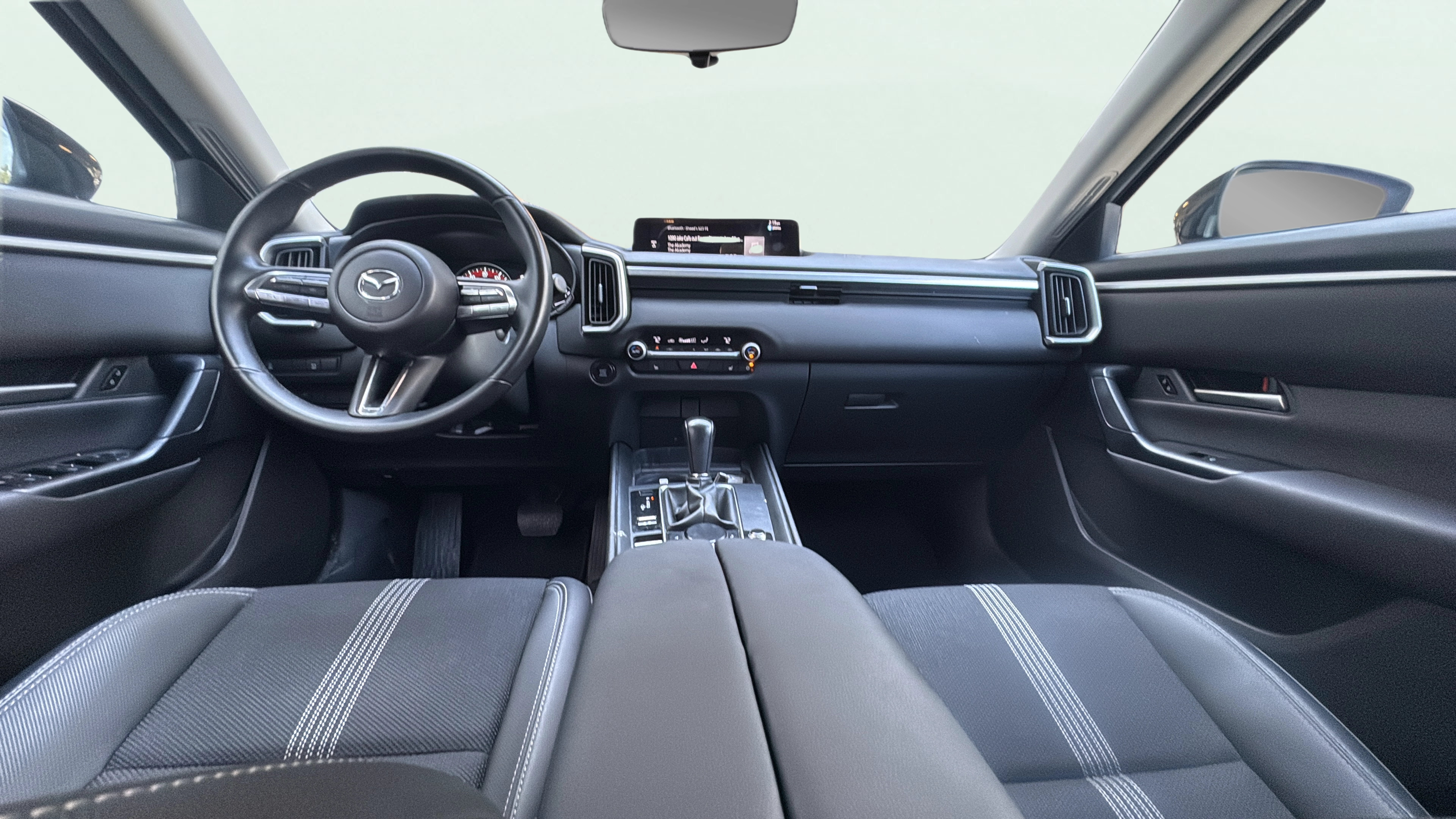 Cloth and leatherette front seat upholstery