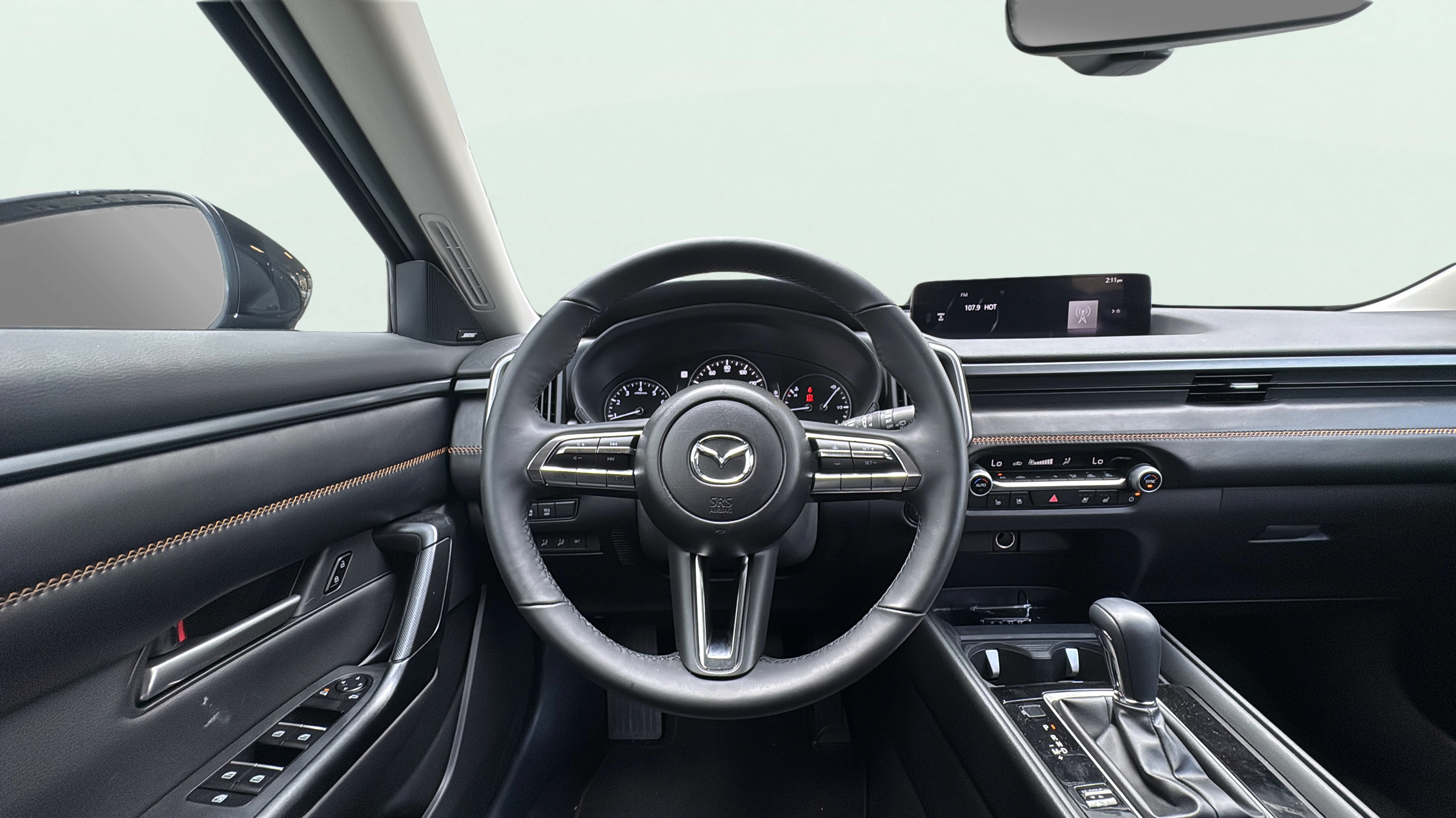 Leather front seat upholstery