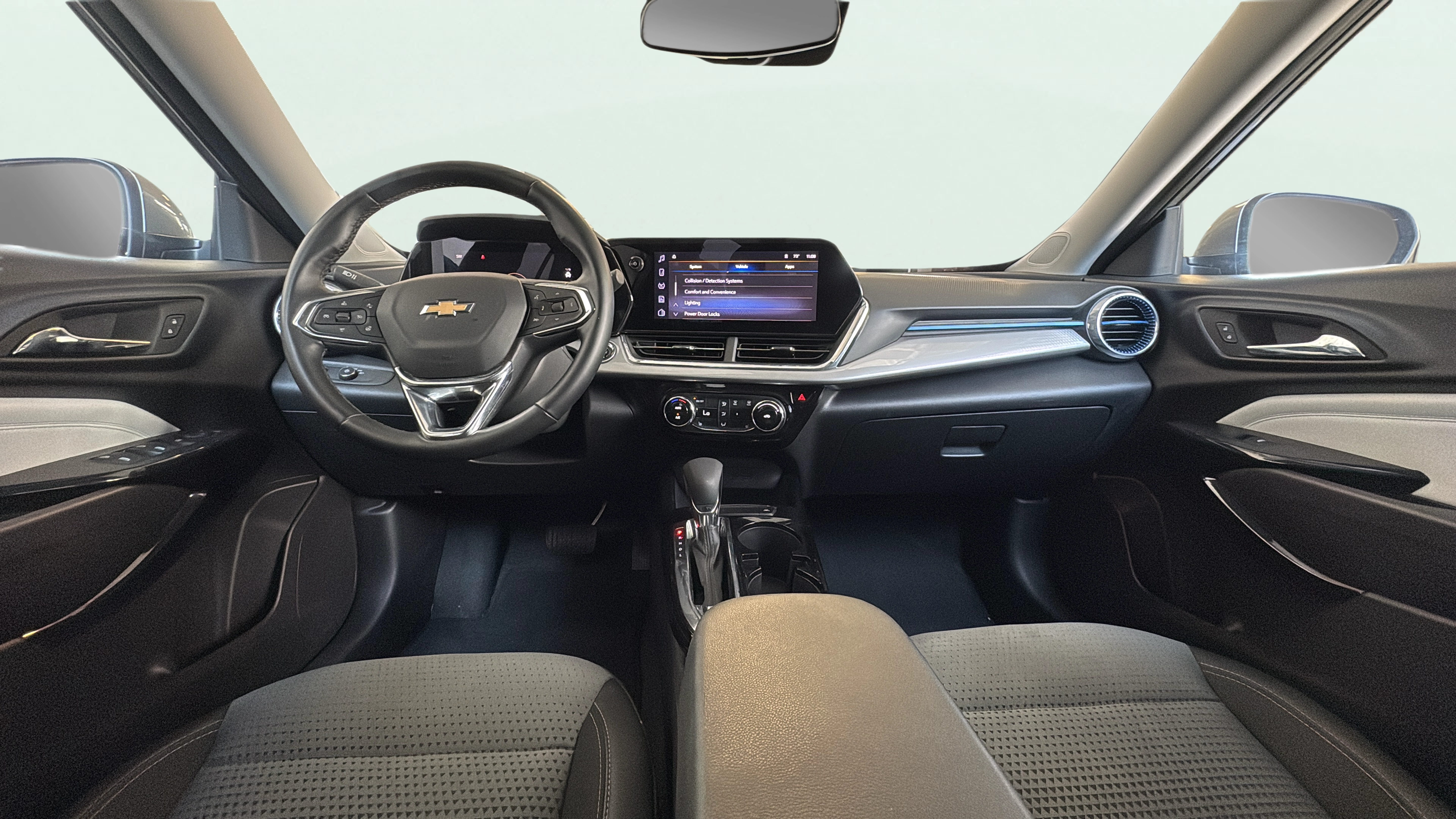 Cloth and leatherette front seat upholstery