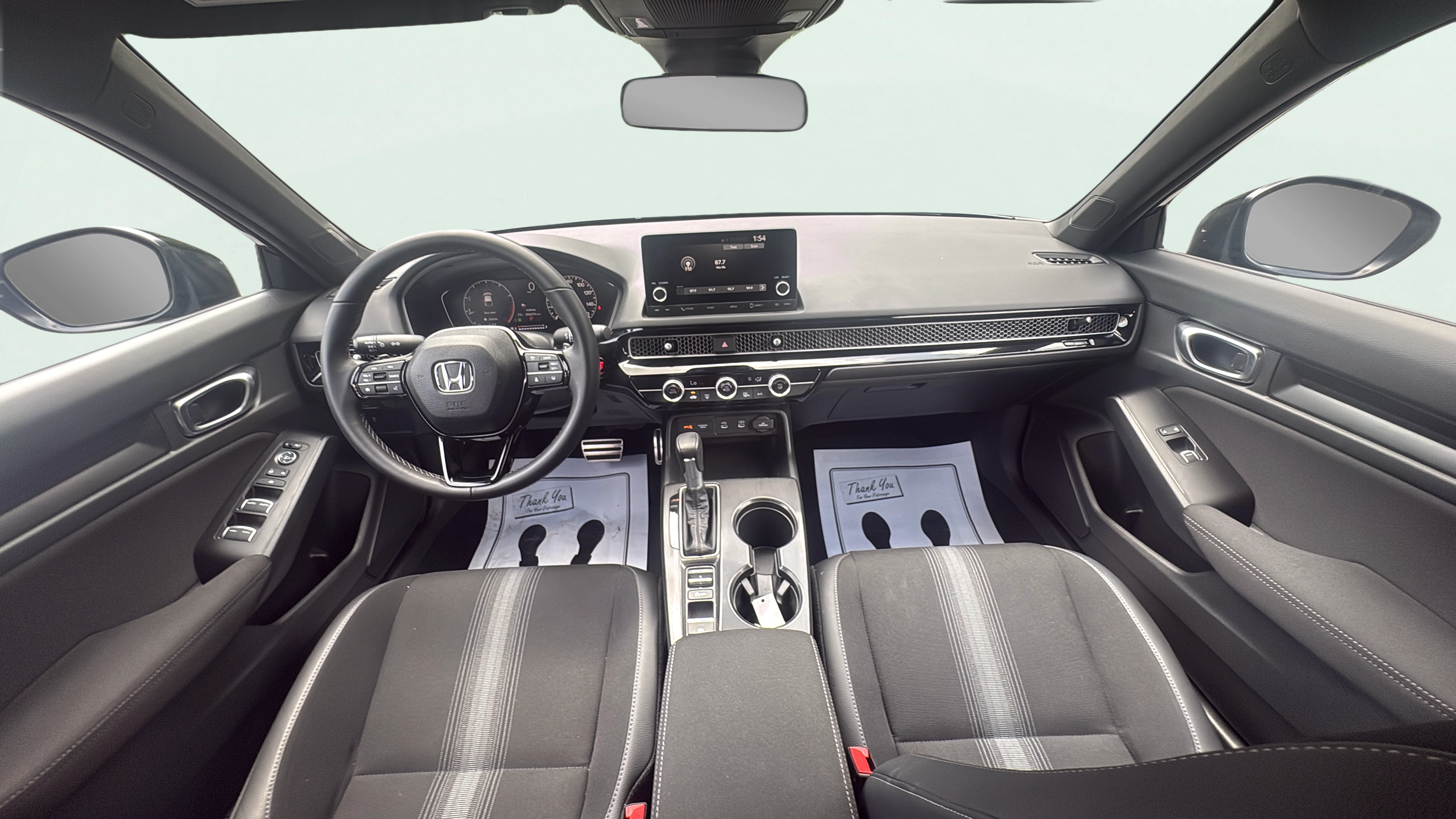Cloth and leatherette front seat upholstery