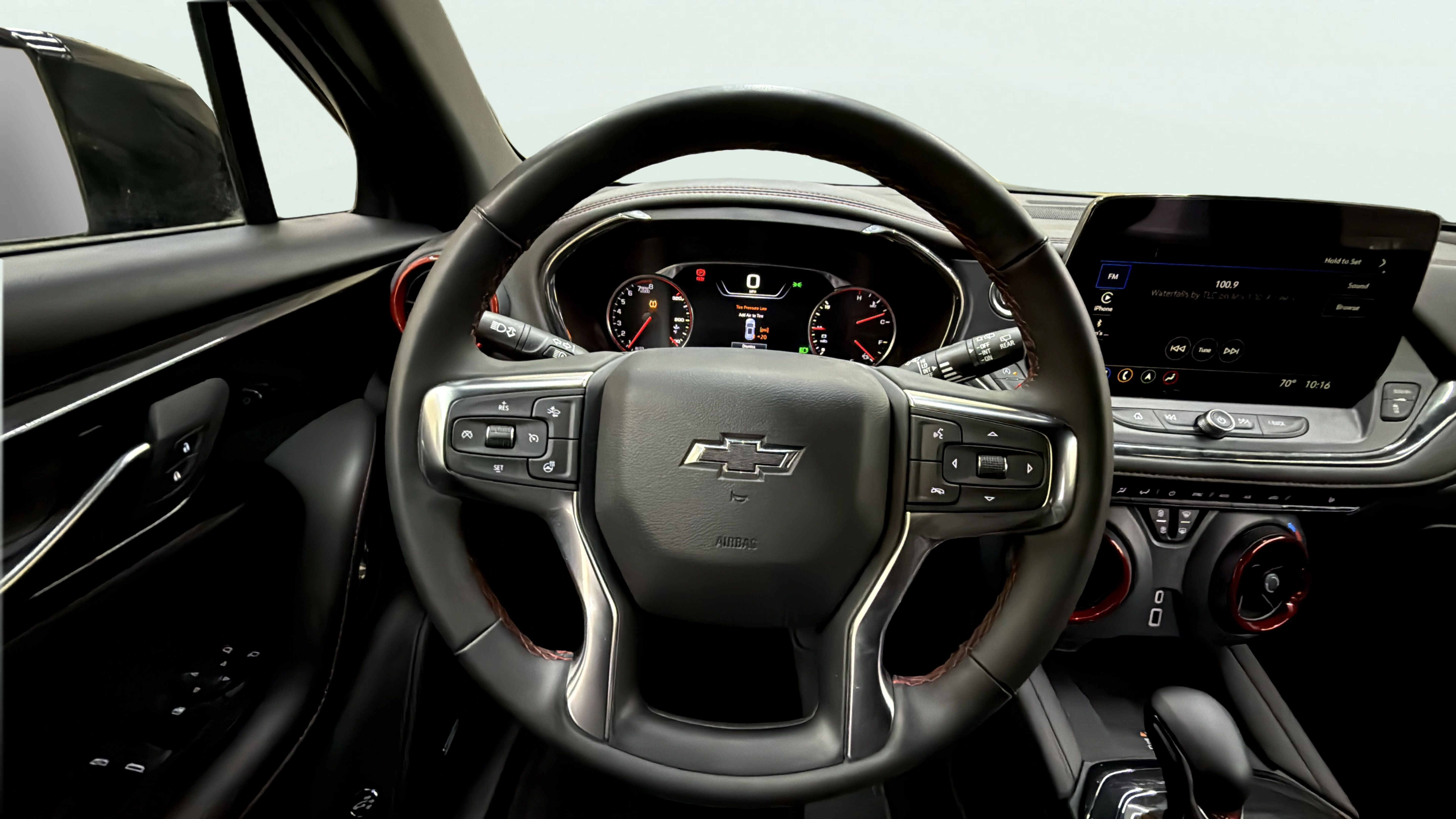 Leather front seat upholstery
