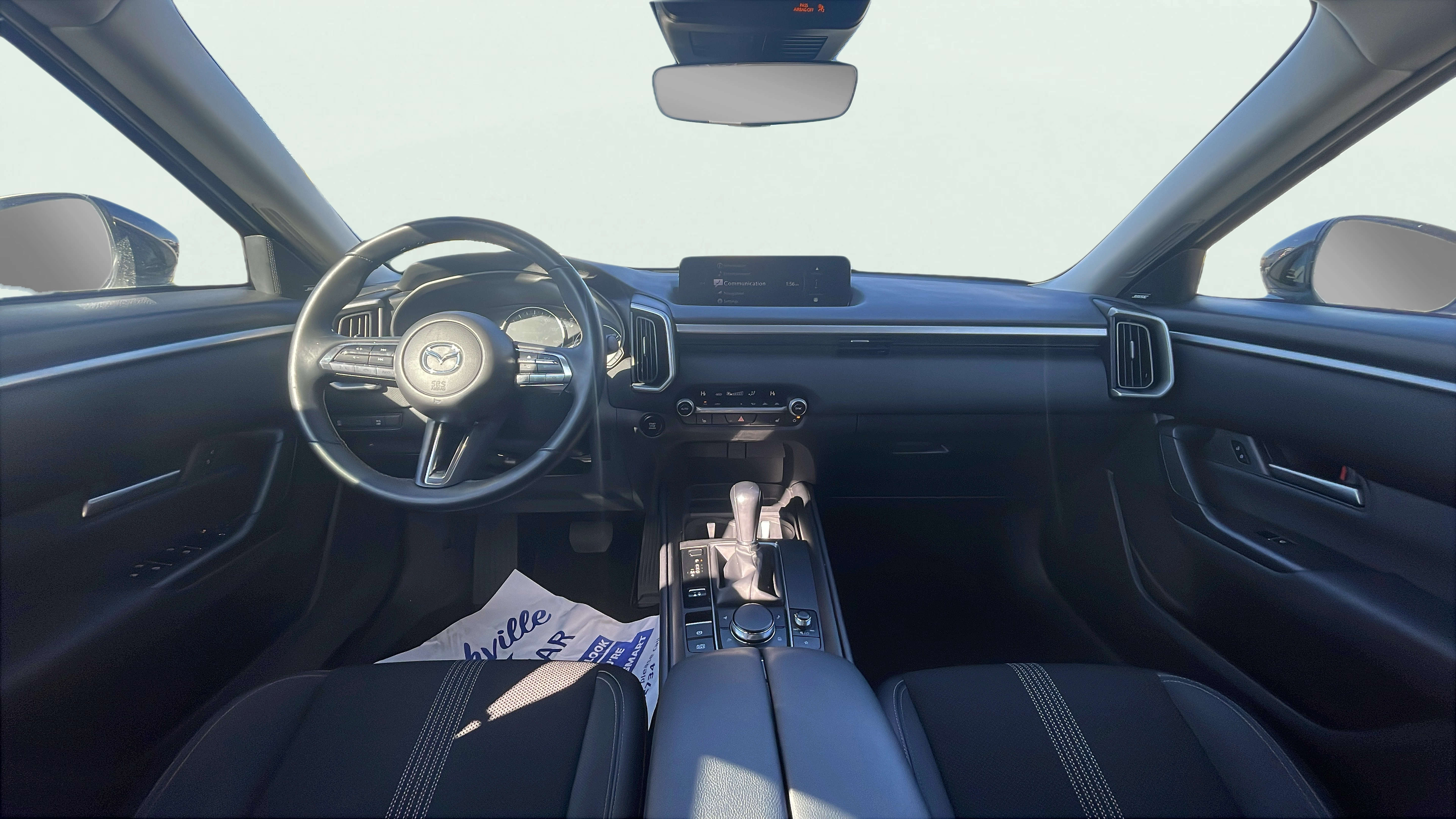 Cloth and leatherette front seat upholstery