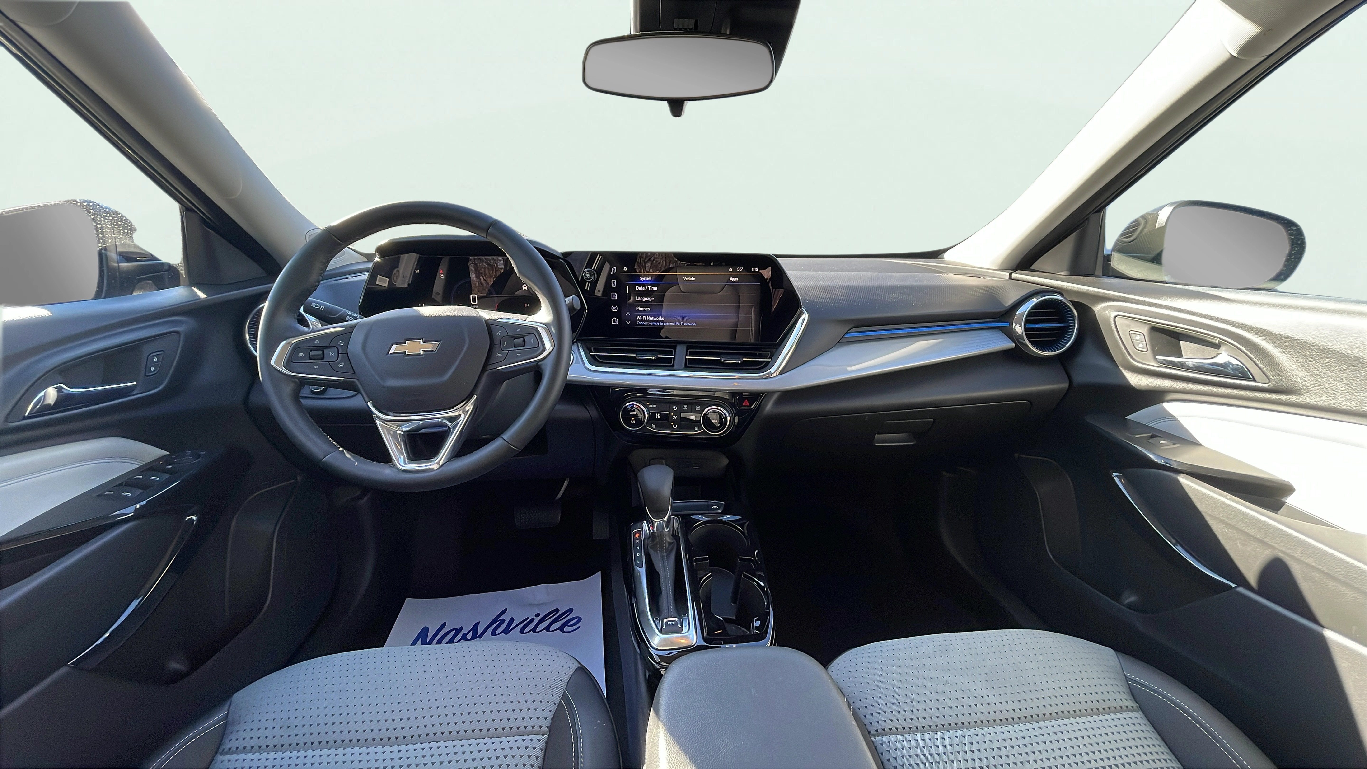 Cloth and leatherette front seat upholstery