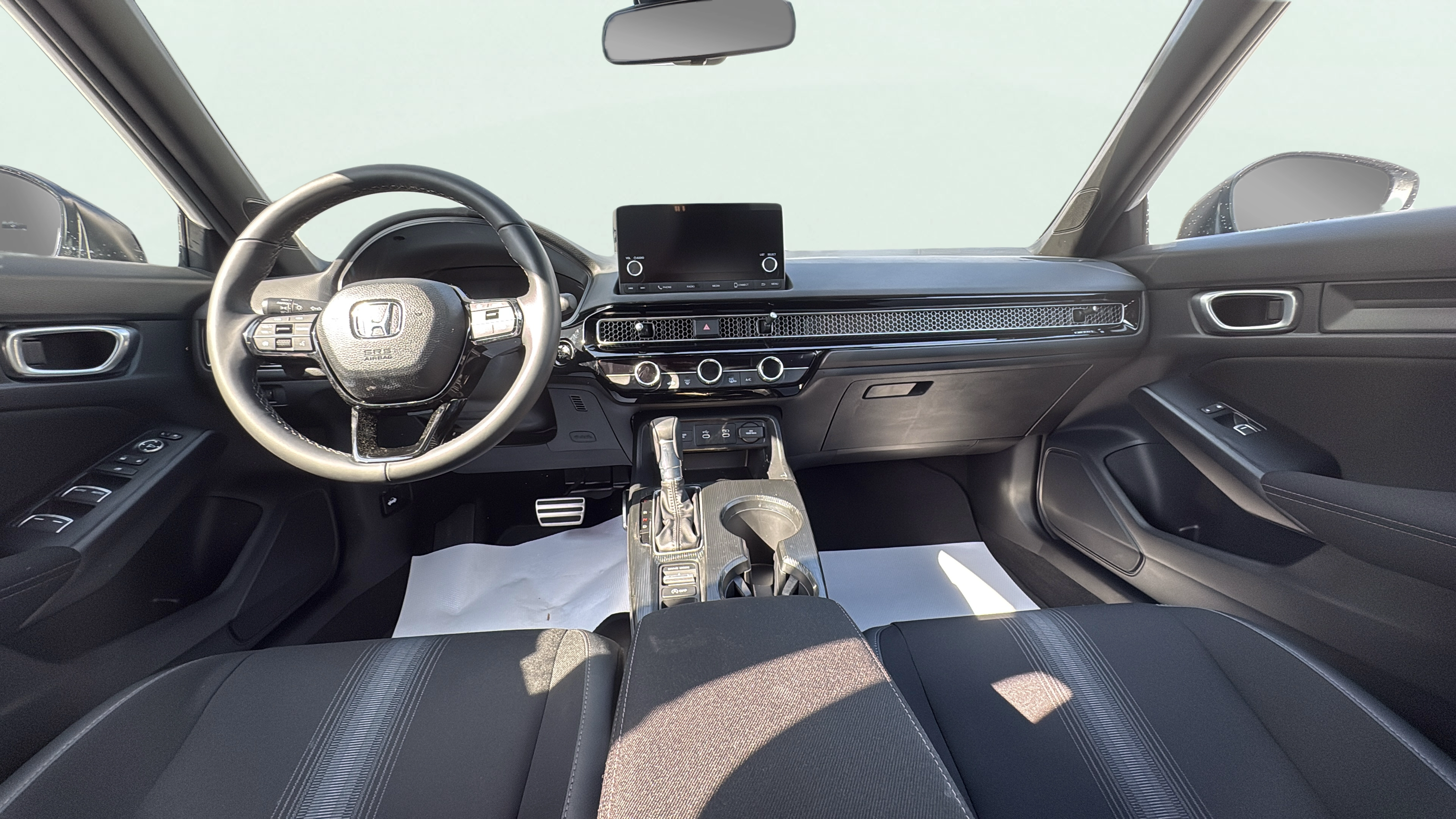 Cloth and leatherette front seat upholstery