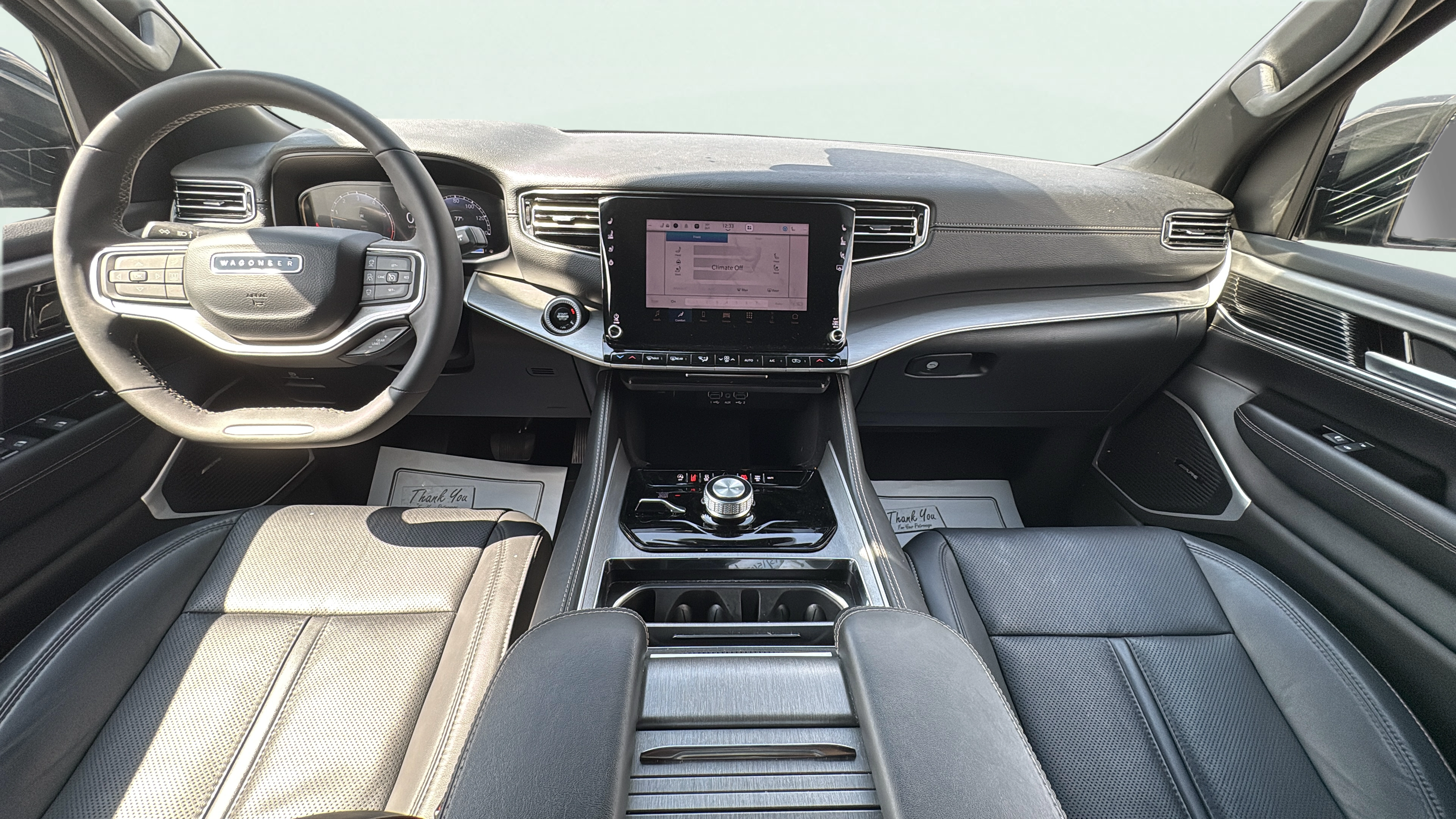 Leather front seat upholstery