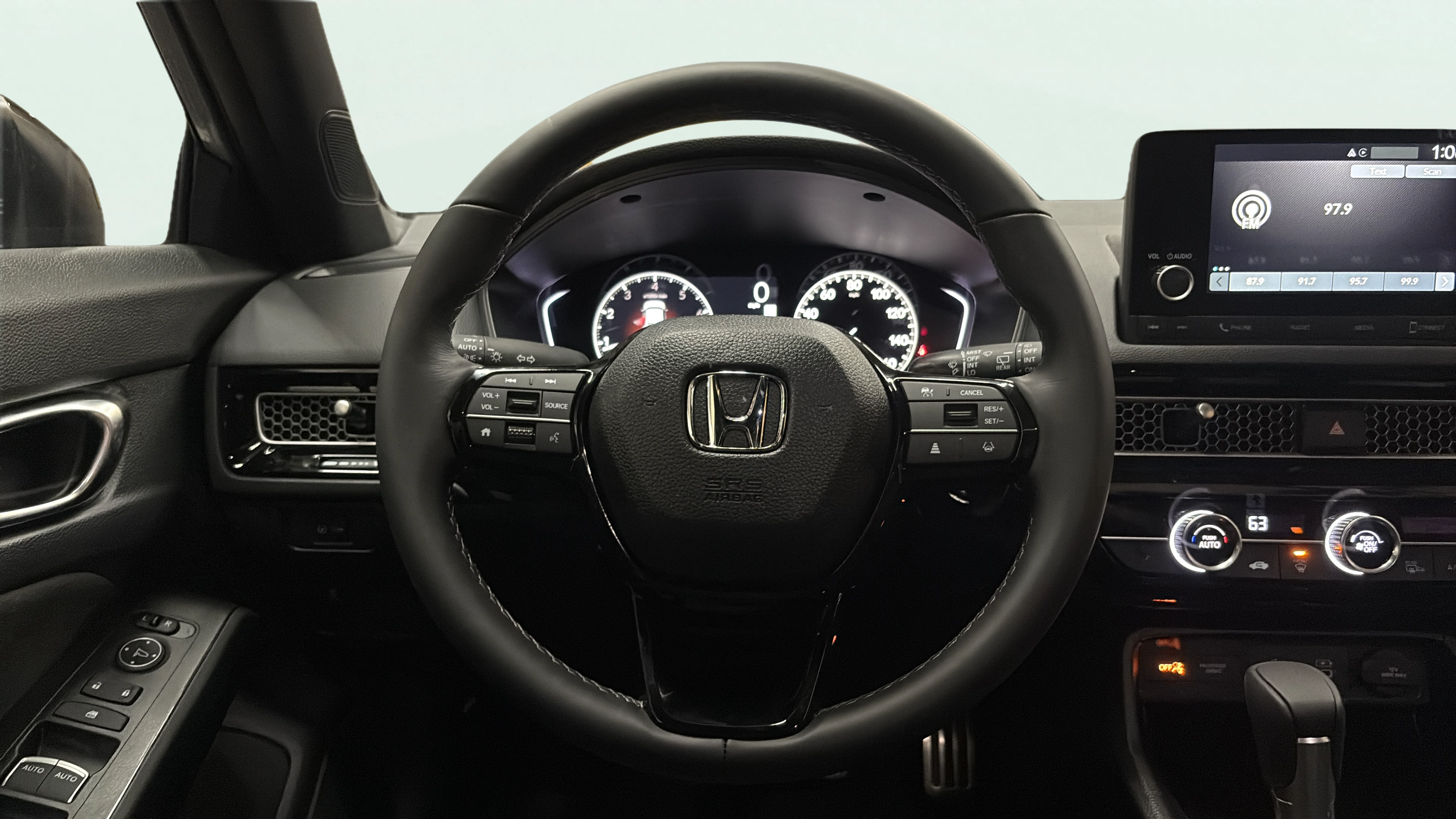 Cloth and leatherette front seat upholstery