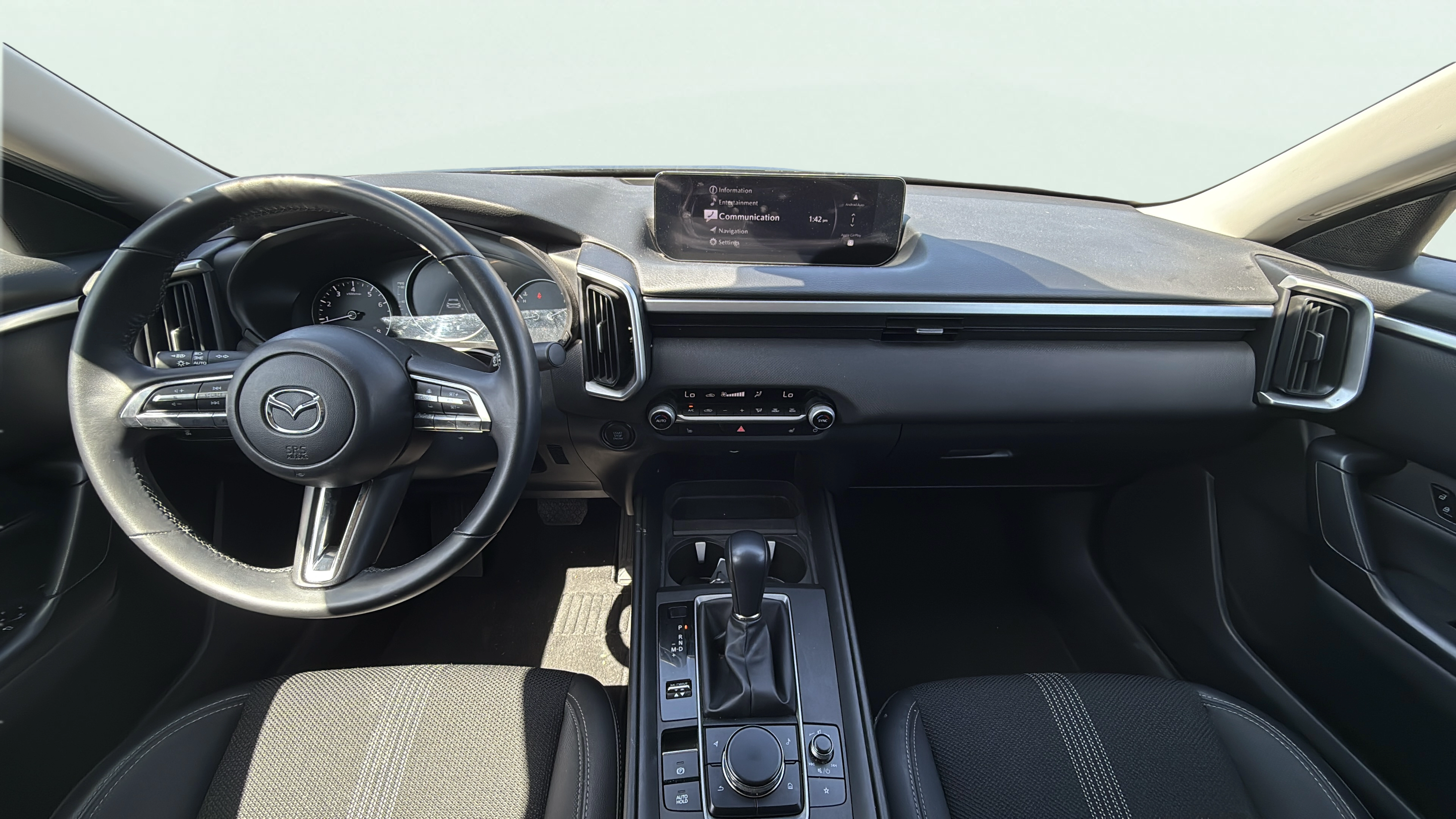 Cloth and leatherette front seat upholstery