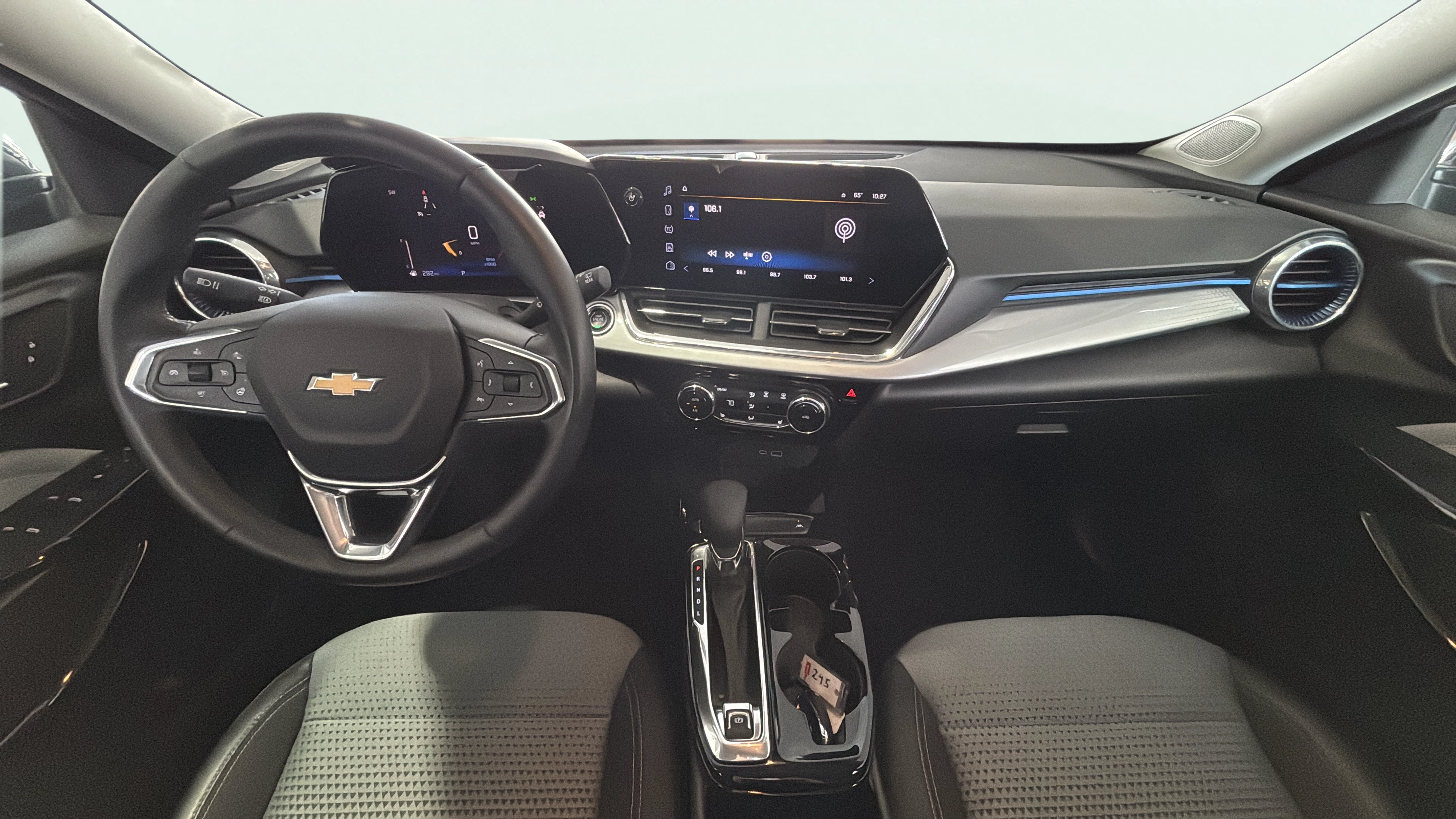Cloth and leatherette front seat upholstery