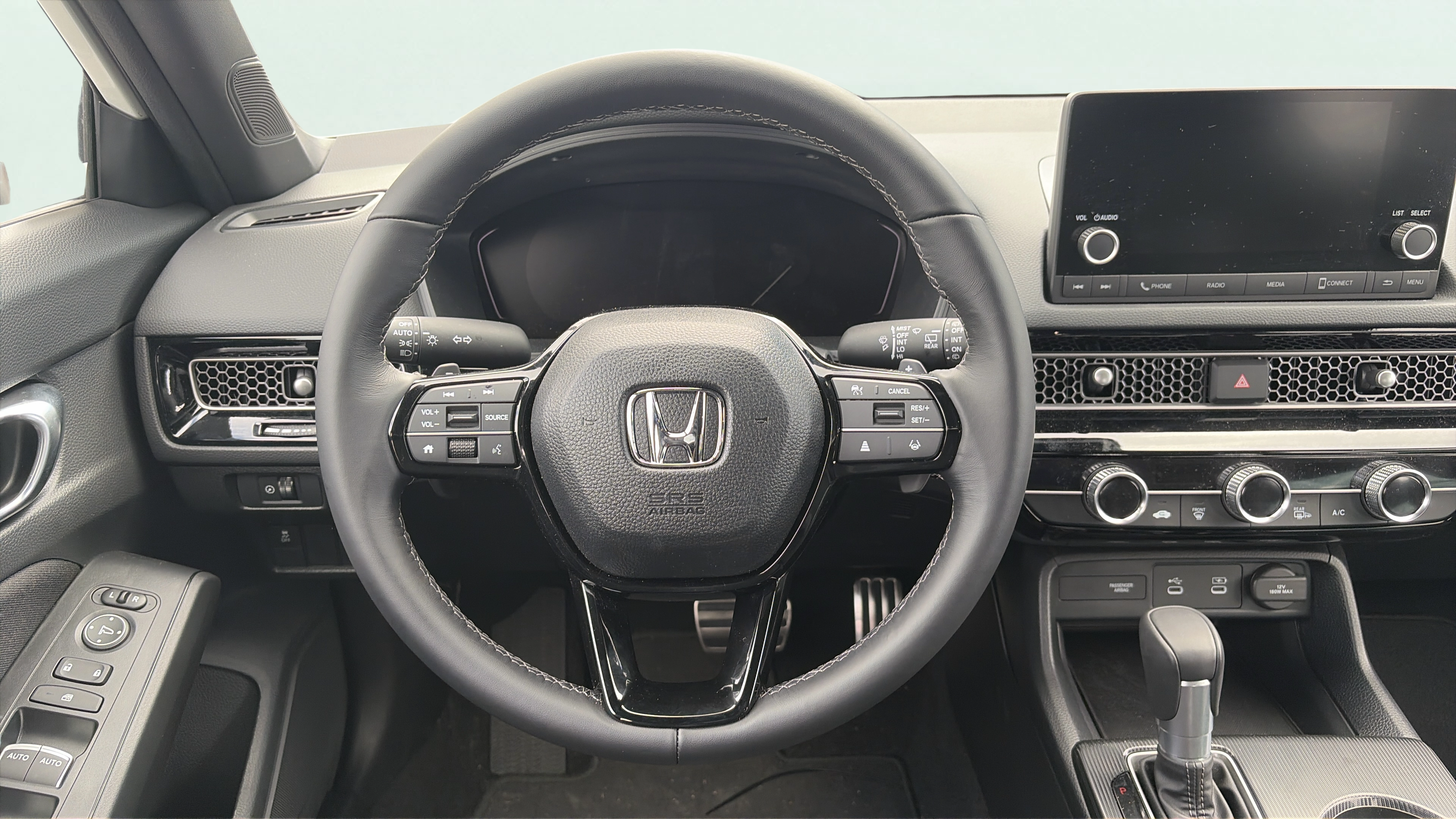Cloth and leatherette front seat upholstery