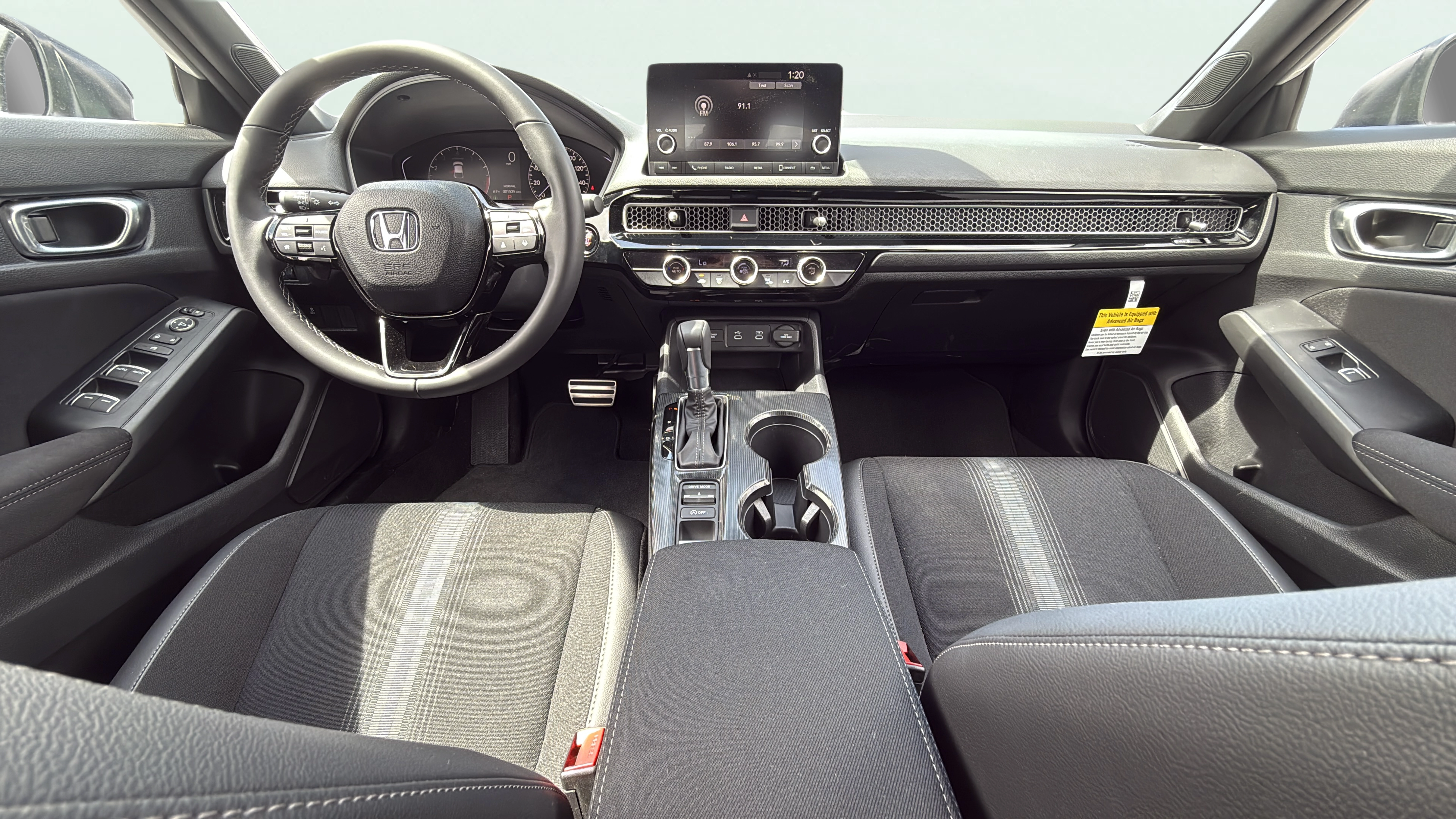 Cloth and leatherette front seat upholstery
